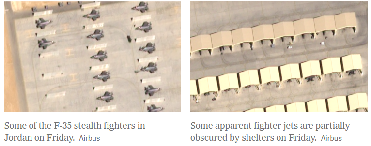 The satellite images also show the presence of more modern aircraft, including F-35 stealth fighters, compared to the platforms normally stationed at Muwaffaq Salti.