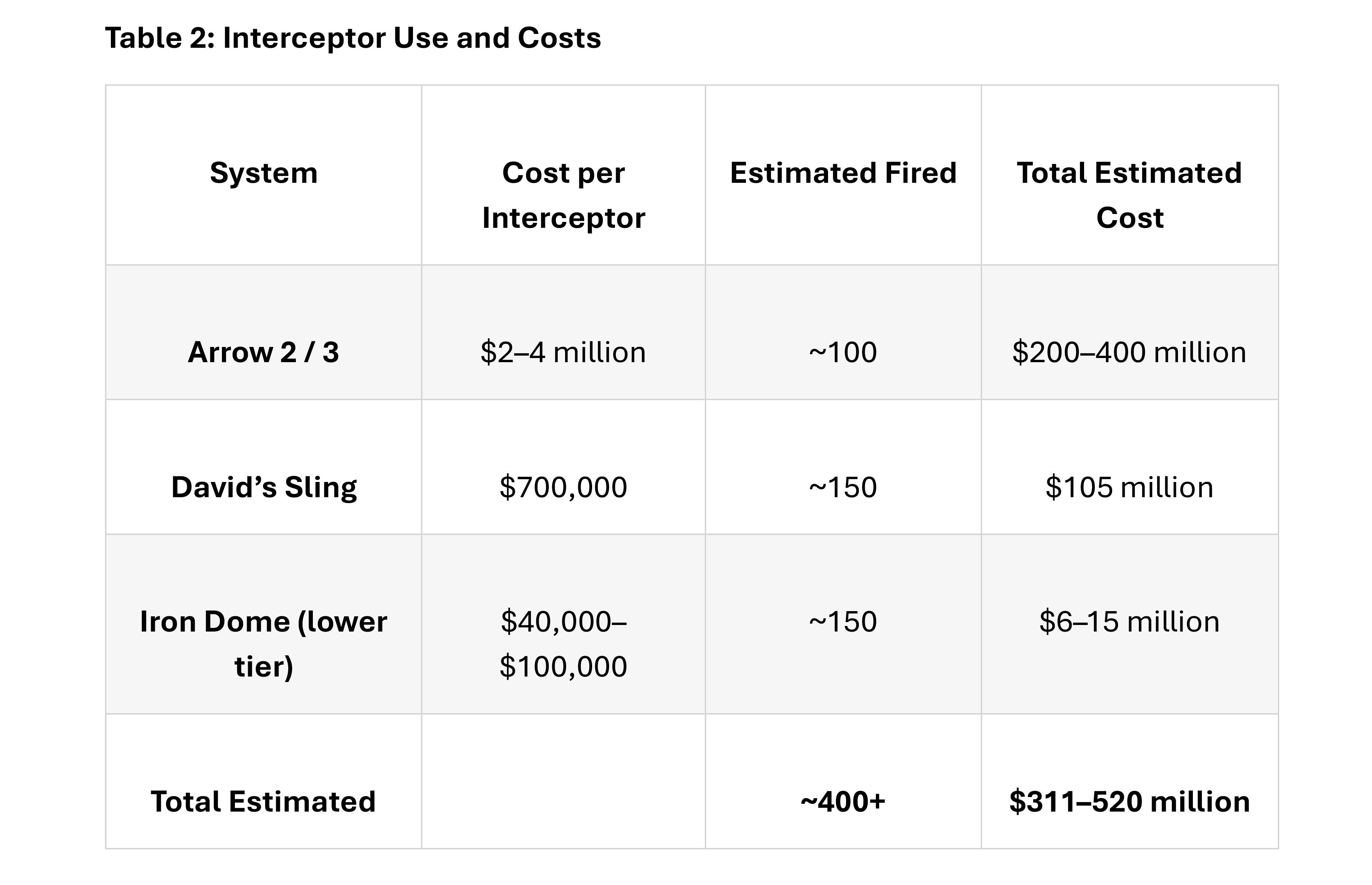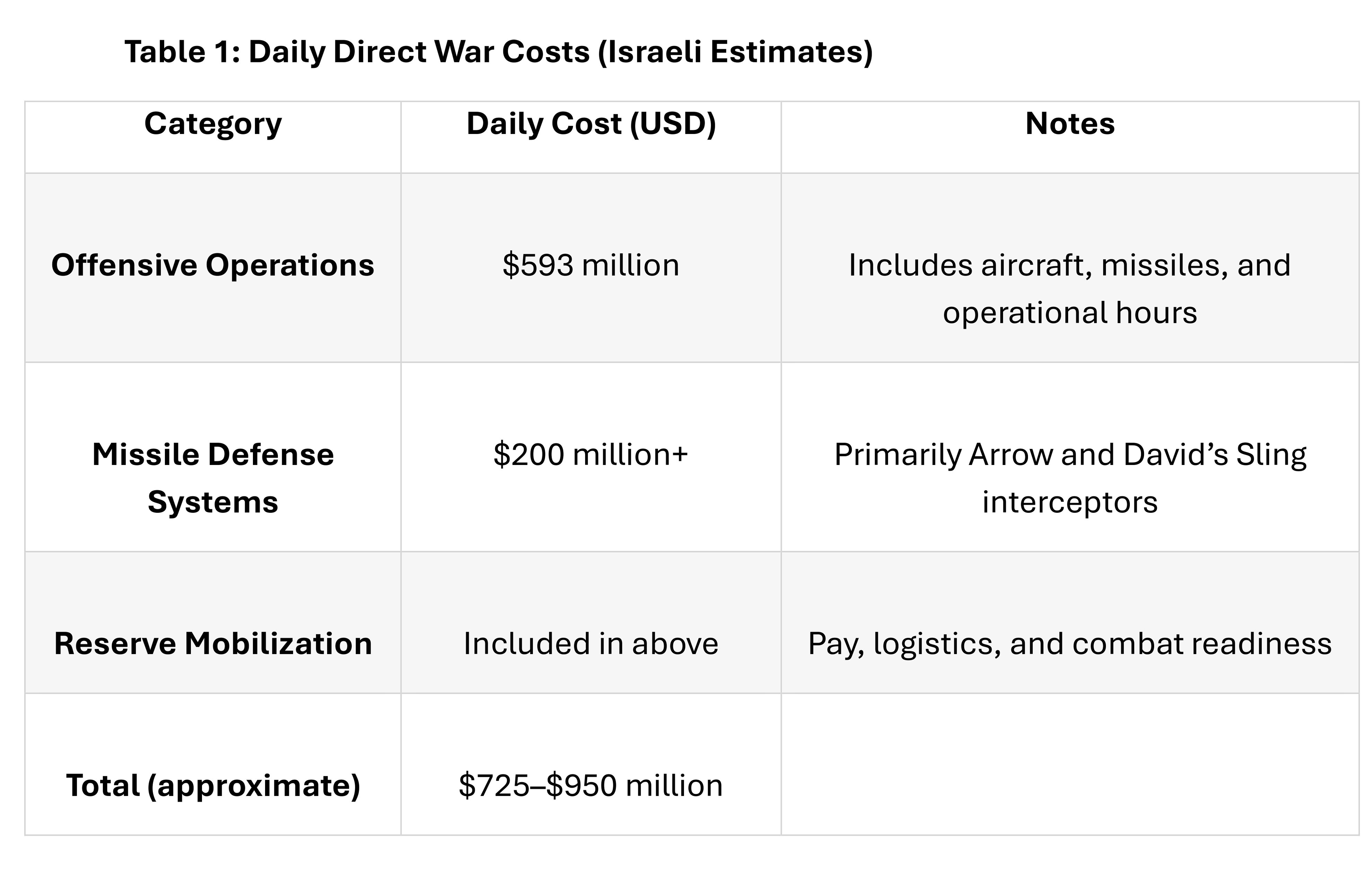 Missile defense alone costs more than $200 million a day, primarily due to the cost of interceptors. Arrow 3 missiles cost $4 million apiece, and David’s Sling interceptors are valued at roughly $700,000 per launch.