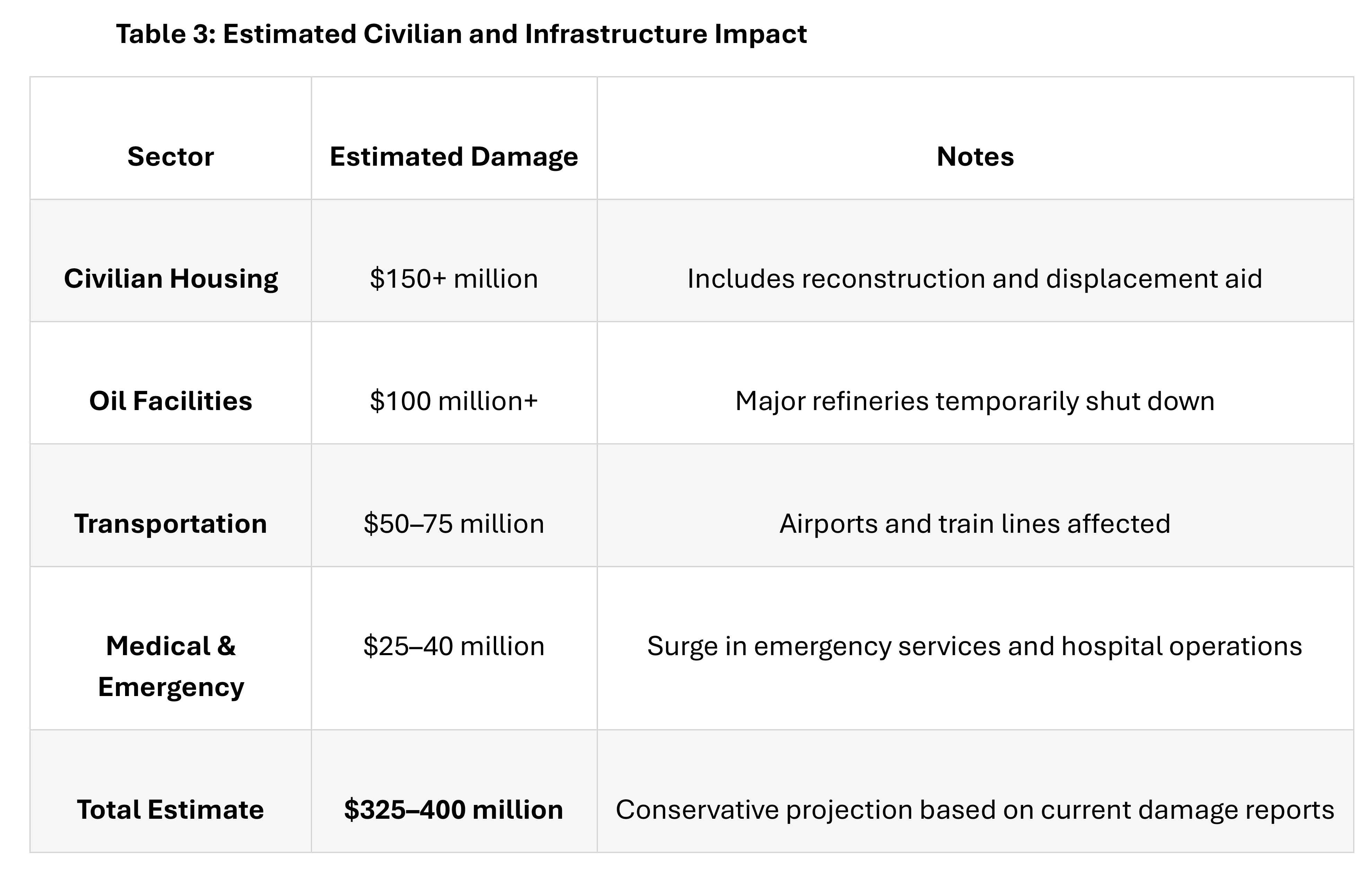 Infrastructure and Civilian Costs Mount