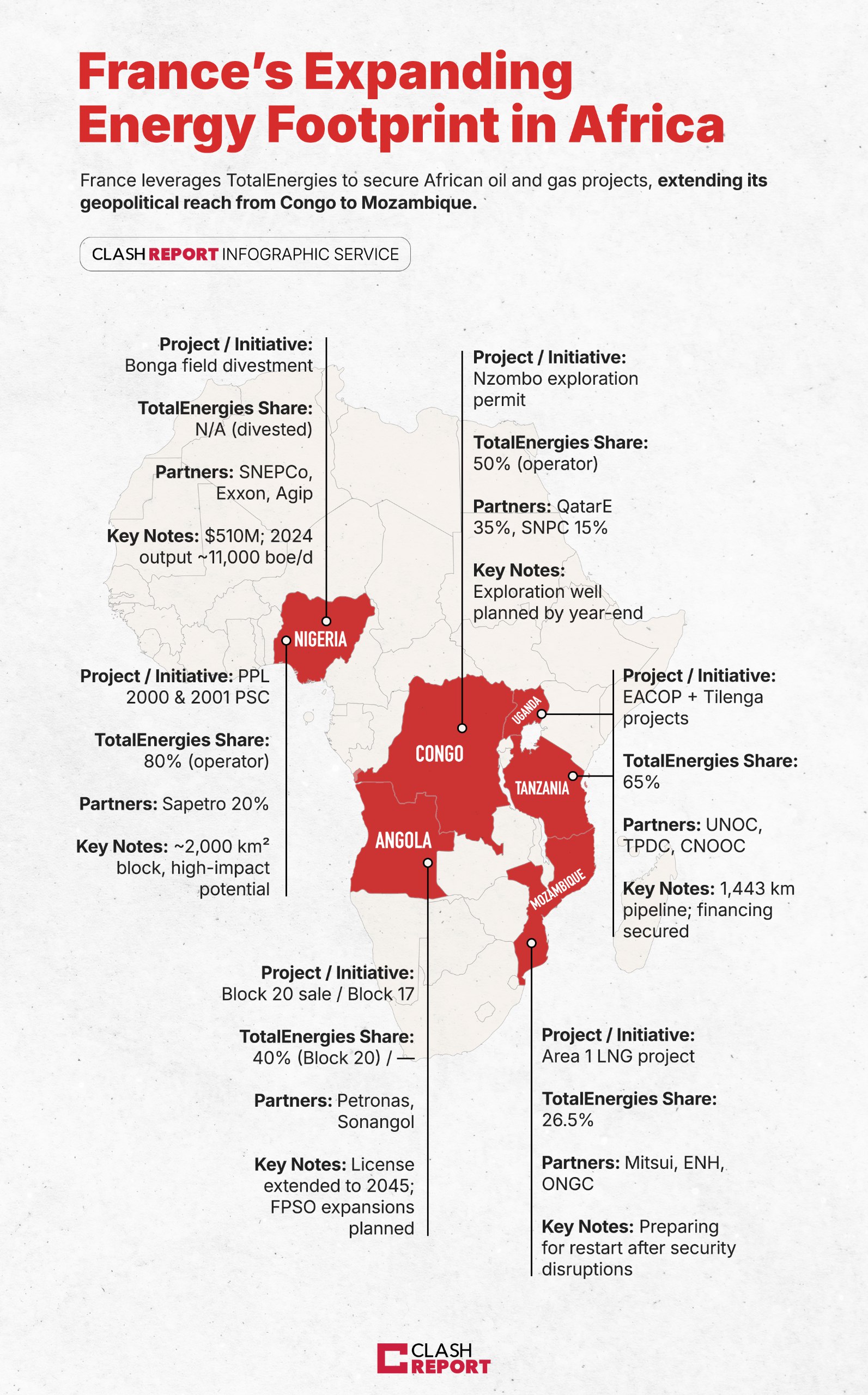 TotalEnergies anchors France’s oil and gas presence from Nigeria to Mozambique. Projects span exploration, LNG, and pipeline ventures with global partners. Stakes range from 26% to 80%, highlighting varied strategic commitments.