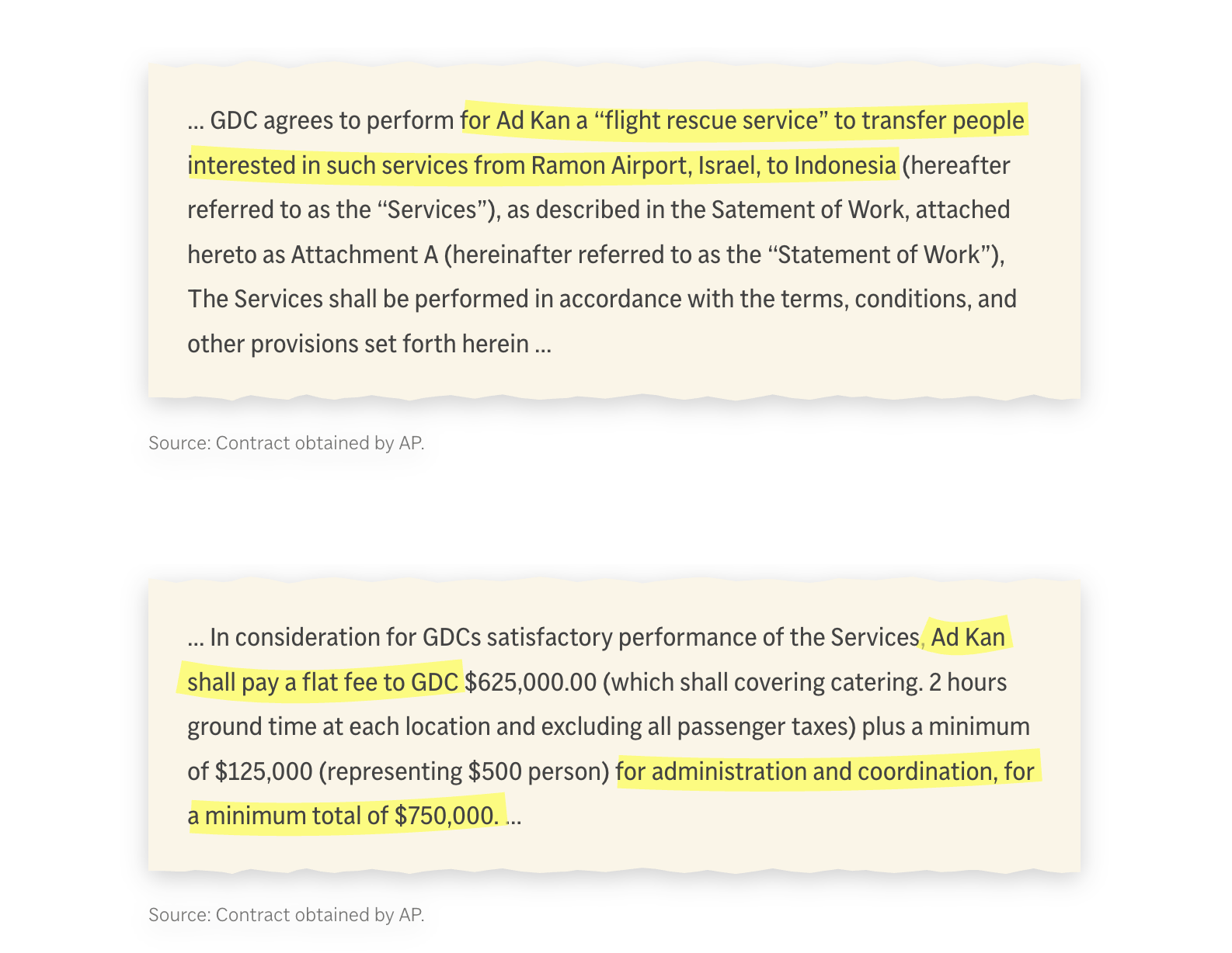 Contracts, passenger lists, financial records, and text messages reviewed by AP suggest the structure was intended to distance the operations from direct Israeli involvement. American-Israeli businessman Moti Kahana signed a contract in August to help arrange a flight that could transport more than 300 Palestinians from Israel’s Ramon Airport to Indonesia for a minimum payment of $750,000.