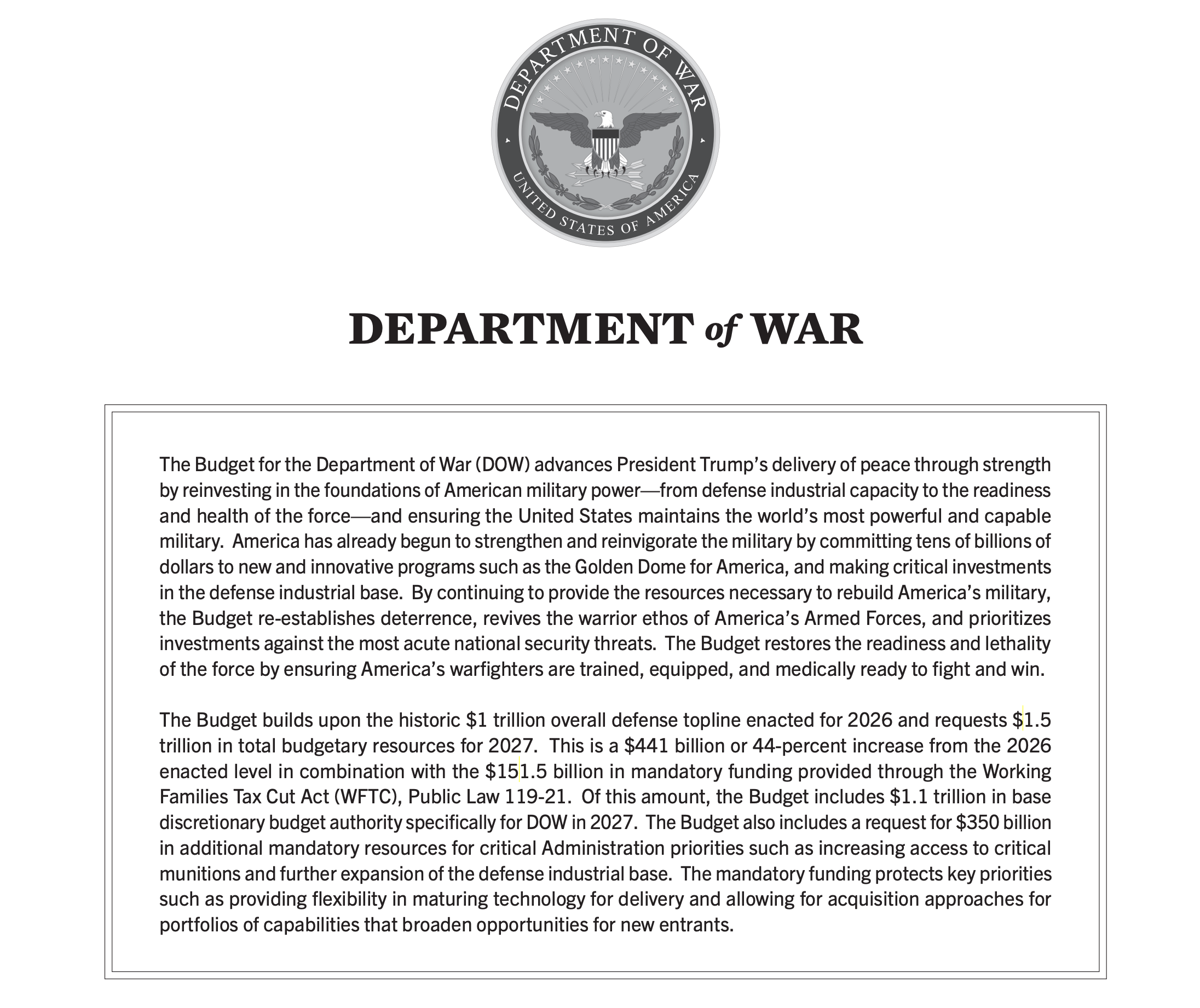 Budget Battle Begins: Trump Asks Congress $1.5 Trillion for War