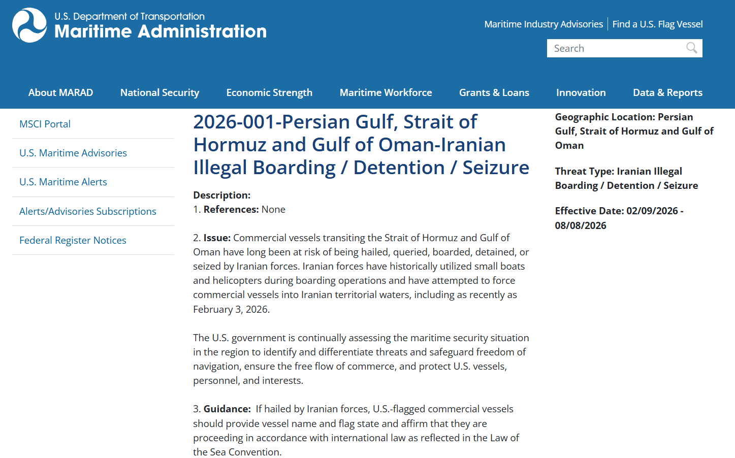 U.S. Issues New Guidance for Vessels Transiting Strait of Hormuz