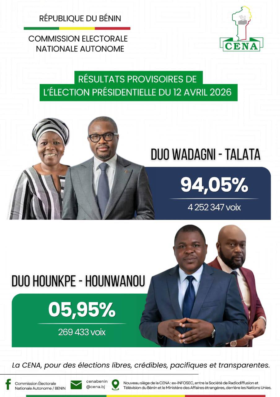 Opposition candidate Paul Hounkpe, running under the Cowry Forces for an Emerging Benin party, conceded earlier the same evening. "To Romuald Wadagni, I offer my republican congratulations," Hounkpe said in a televised statement carried by local broadcasters, adding that "democracy requires mutual respect and the ability to rise above partisan divides."