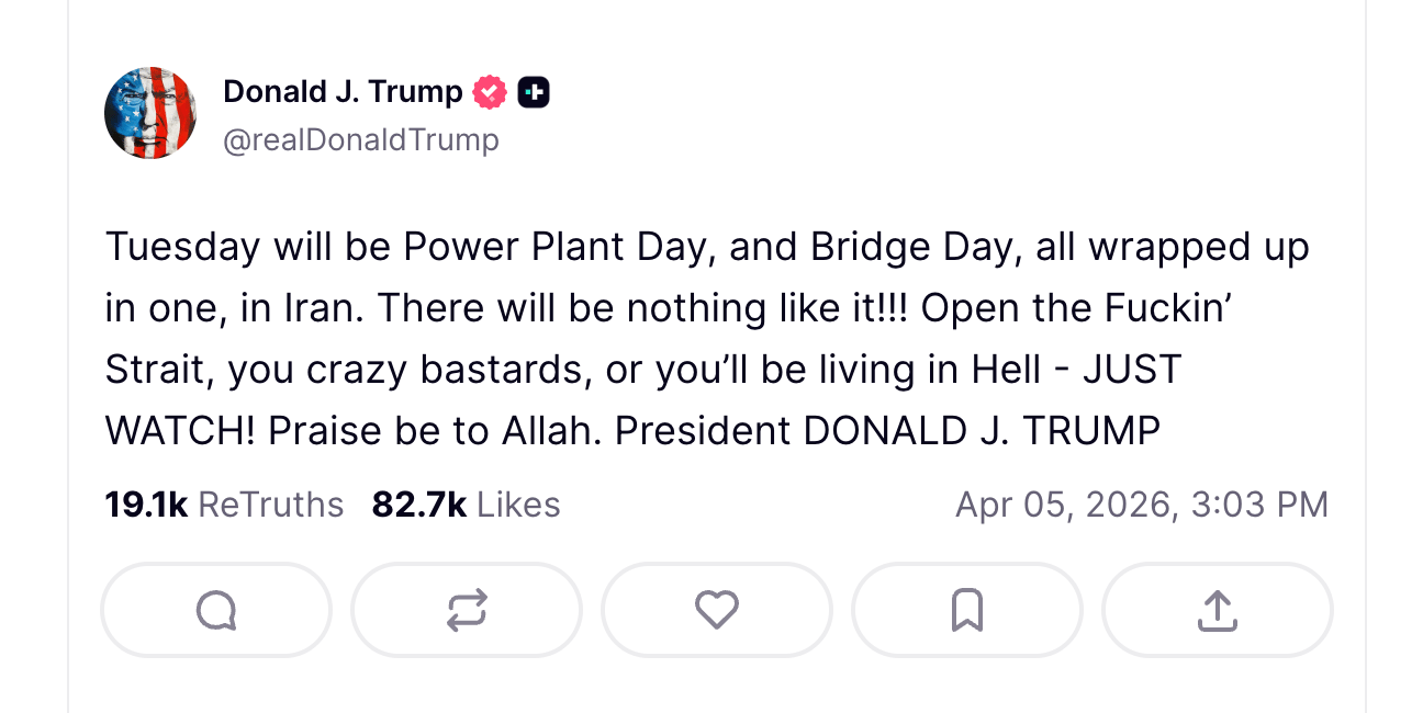 In a separate message, Trump combined religious language with threats, warning Tehran to reopen the Strait of Hormuz or face consequences, signing off with “Praise be to Allah.”