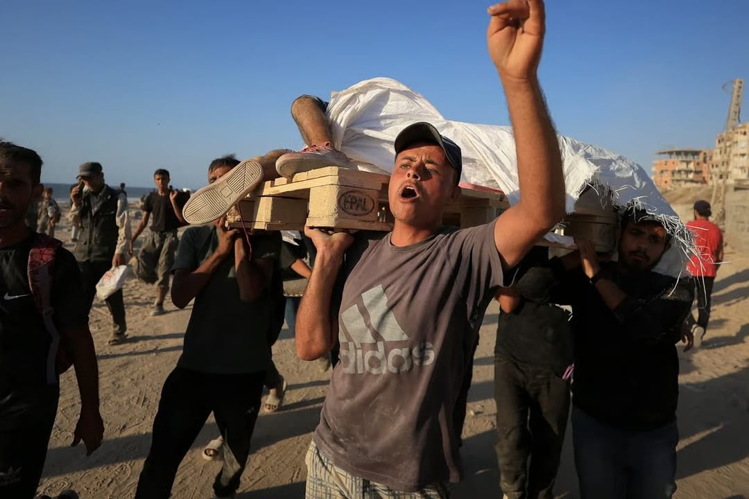Israeli forces shelled a crowd of starving civilians waiting for food trucks near the Zikim crossing in northern Gaza, killing nearly 60 people and injuring over 570.