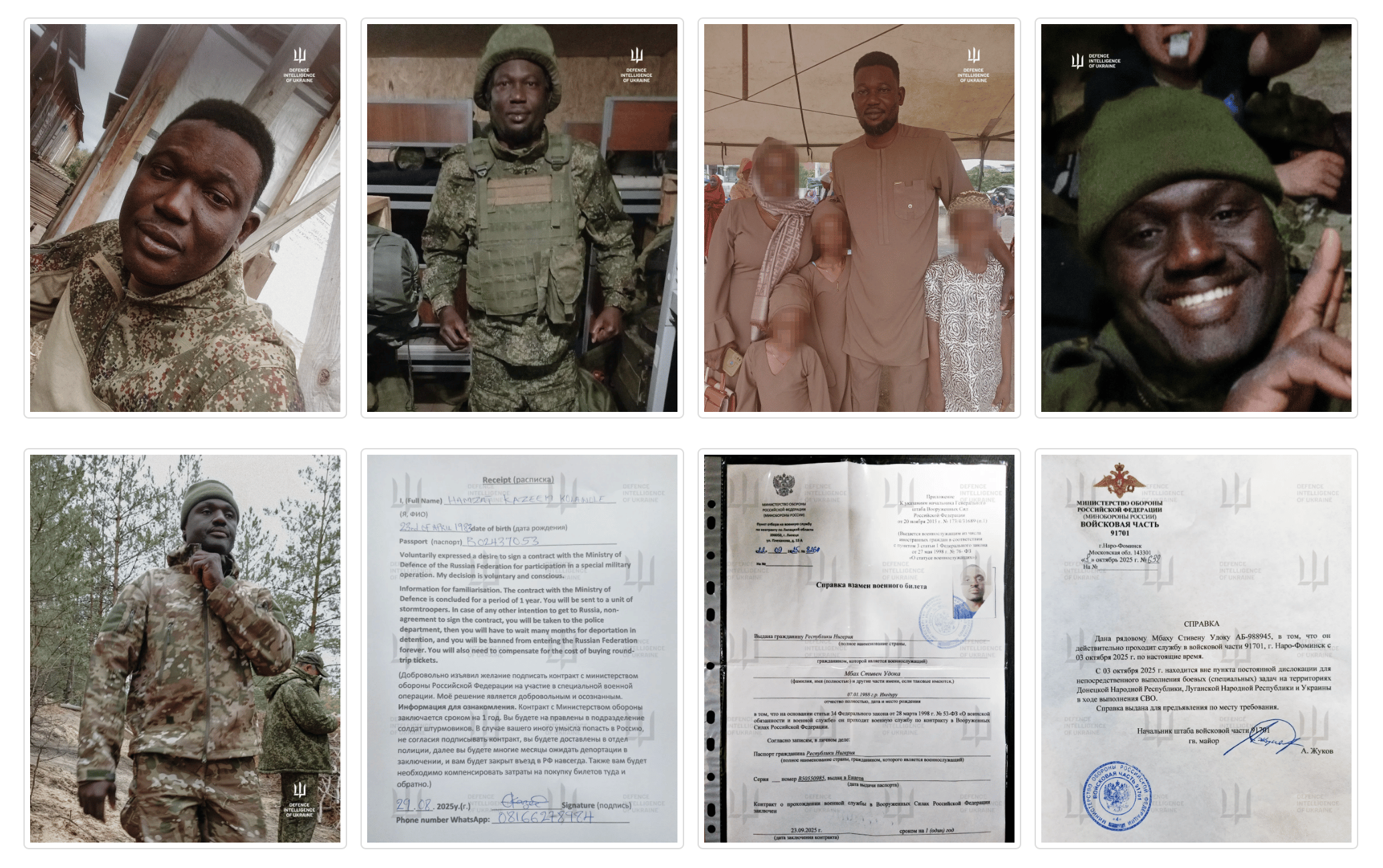 According to Ukrainian authorities, Hamzat Kazeem Kolawole joined Russian forces on August 29, 2025, while Mbah Stephen Udoka enlisted on September 28, 2025.
