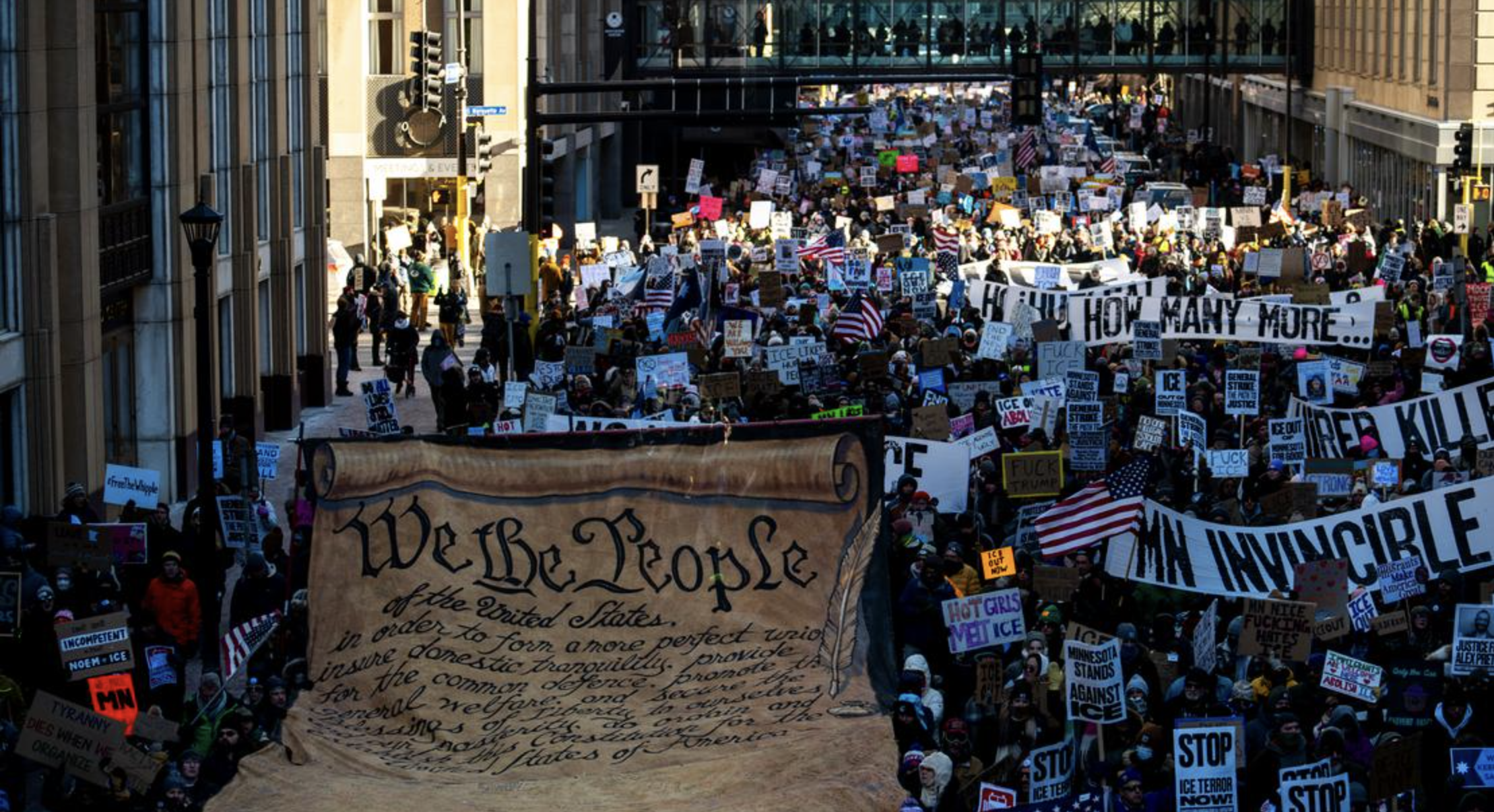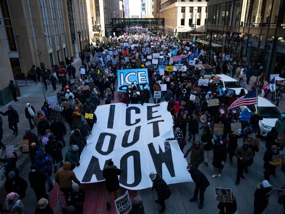 Thousands of demonstrators gather in Minneapolis as part of a nationwide “Day of Action” against US Immigration and Customs Enforcement (ICE). The protests follow fatal shootings of two residents by federal immigration agents.