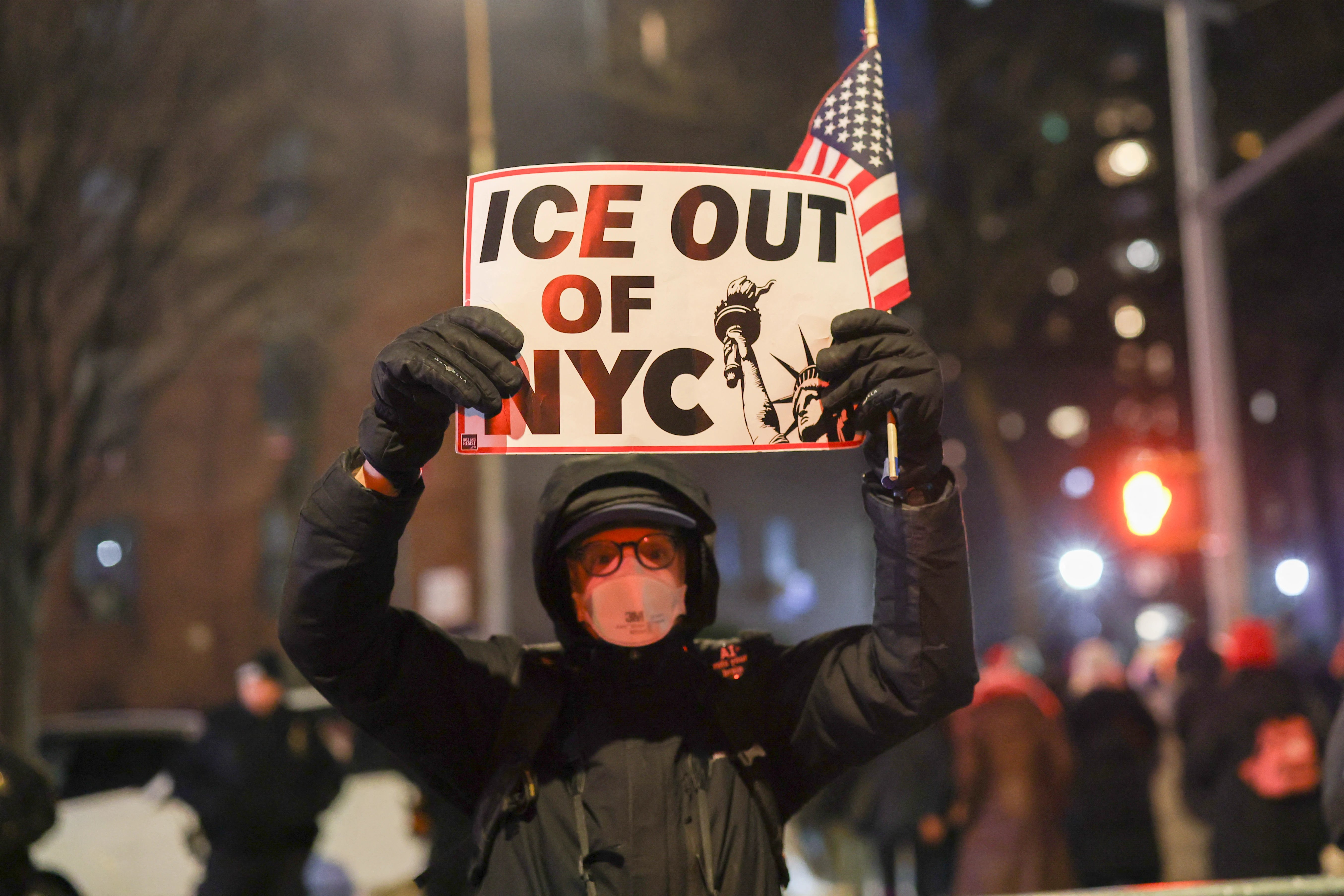 Protesters chant and carry signs demanding an end to Operation Metro Surge, a federal immigration enforcement campaign. Critics say the operation has targeted migrants with clean records and even US citizens.