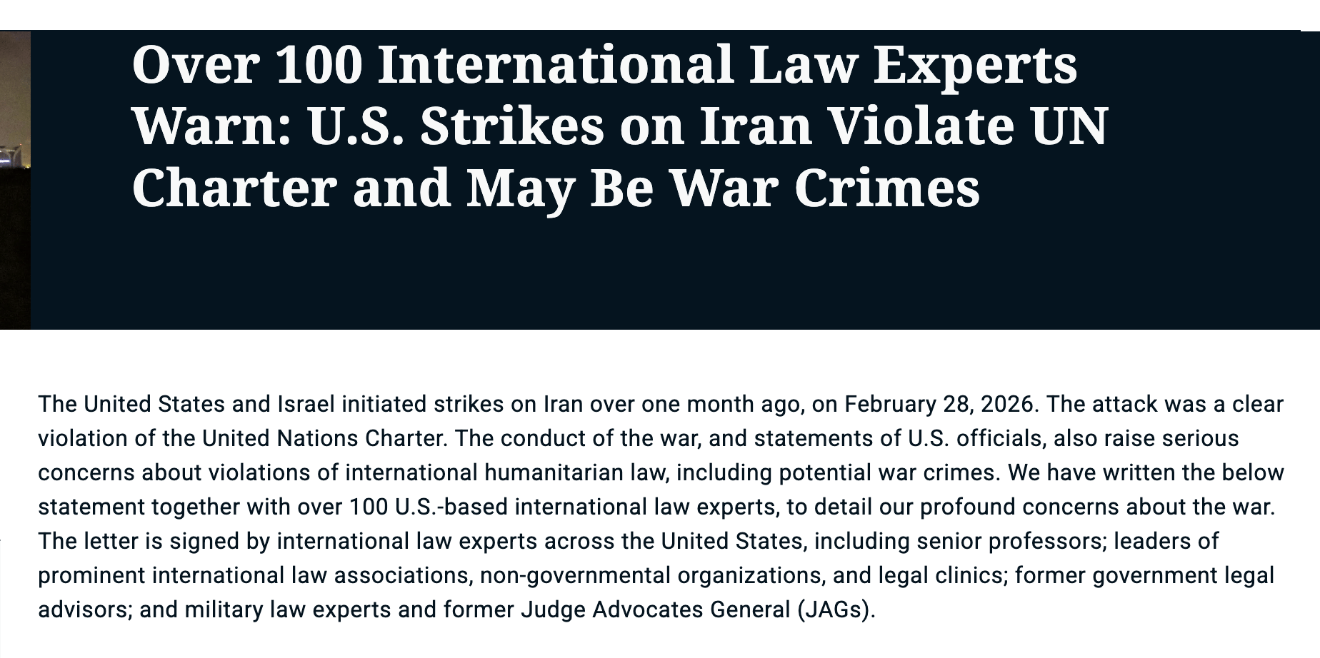 Various other experts share the “warcrime” concern. More than 100 U.S.-based international law experts, including scholars from Harvard, Yale, Stanford, and the University of California, said in a letter released Thursday that the conduct of U.S. forces and statements by senior officials “raise serious concerns about violations of international human rights law and international humanitarian law, including potential war crimes.”